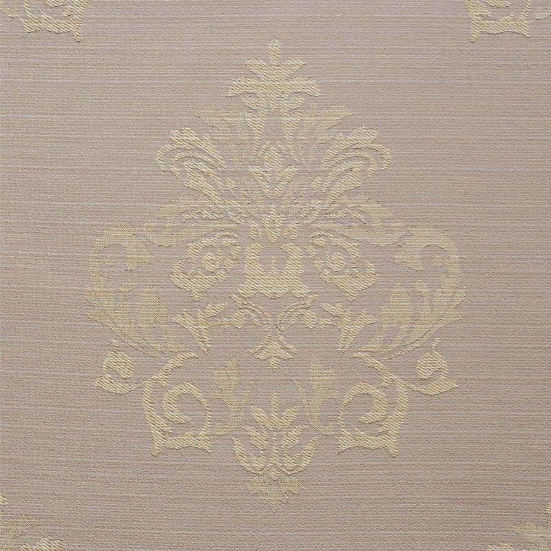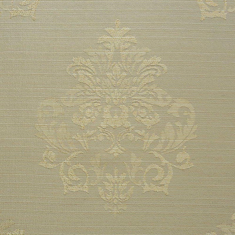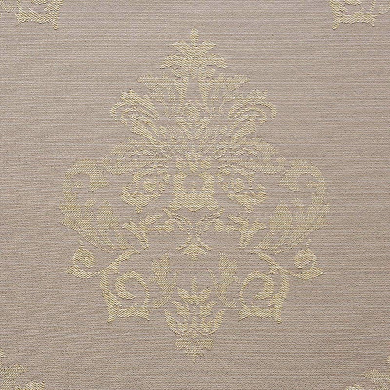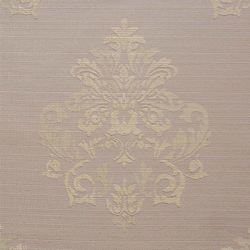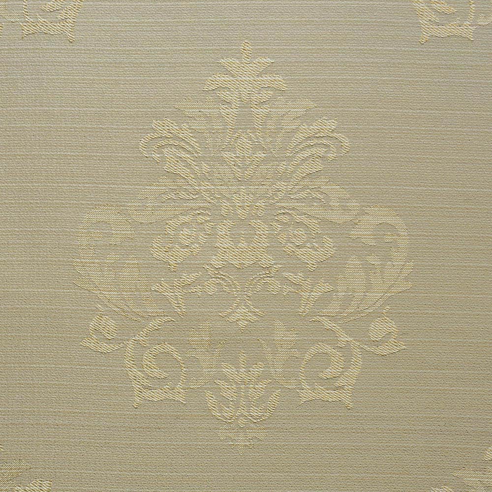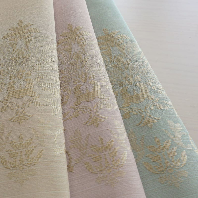 艶やかなゴールドのダマスク文様が浮かびあがるデザインは、華美ではないけれど、しっかりと存在感のある仕上がり。窓辺でそっと空間に華を添えてくれます。