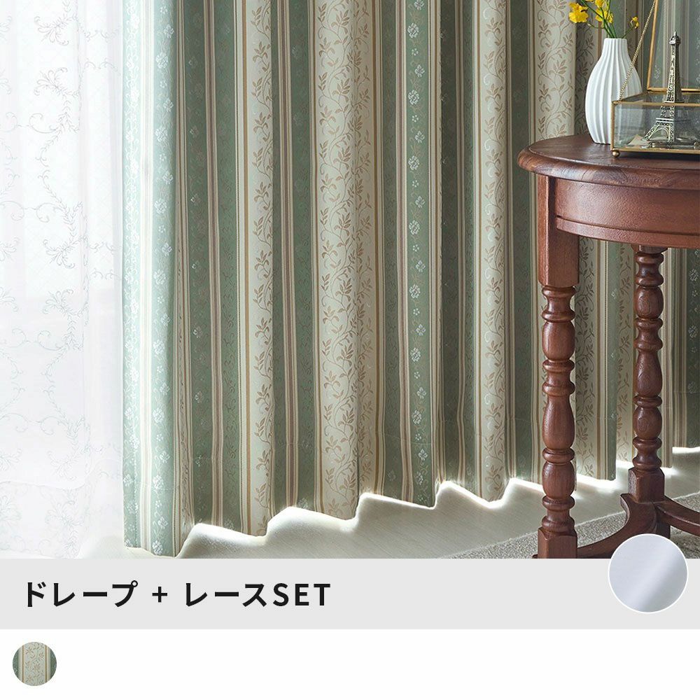 ジャガード織の完全遮光カーテンと遮像レースカーテンのセット