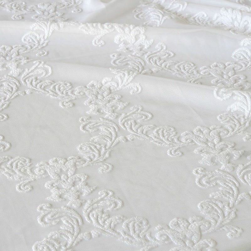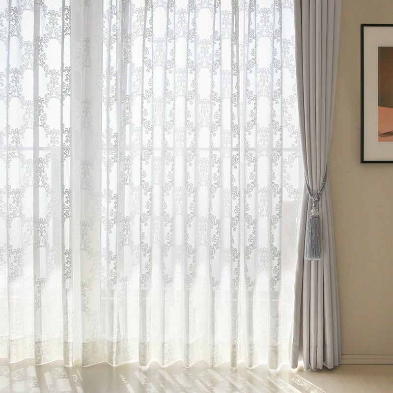 パイルジャガードで見事に表現された、ダマスクデザインが魅力的なレースカーテン。ふわっと起毛感のあるテクスチャーが優美な雰囲気を演出します。エレガントな窓辺へと導く、特別なオーダーカーテンを貴方に。