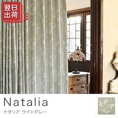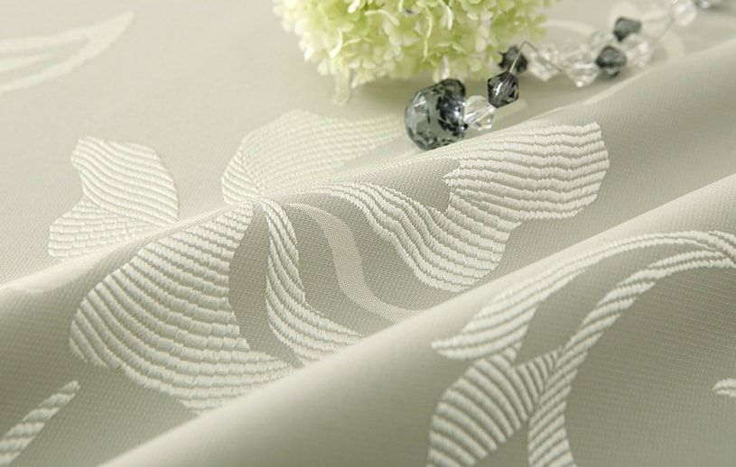 シンプルな色使いに、伸びやかな花姿を織り上げたジャガードカーテン。