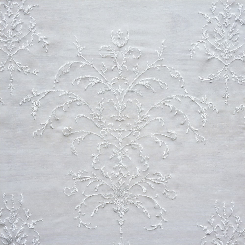 愛され続けるオーナメント模様を、アーティスティックにレースに刺繍しました。繊細な刺繍はインテリアに溶け込みやすいようにベースカラーと同系色の糸を使用しています。古典的でシャビーシック感溢れるレースでお洒落な空間作りをお楽しみください。