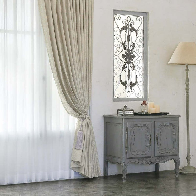 カラー:ベージュ(ml_3208)【撮影コーディネート】レースカーテン<~リーアン~>/2倍ヒダ(3つ山)、タッセル <リュクス~ライトグレー~>