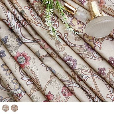 「先染め」によるエキゾチックで豊富な色使いが美しい、ジャガードカーテン。どこか異国情緒漂う、ボタニカル柄の美しい一枚が贅沢にお部屋を彩ります。