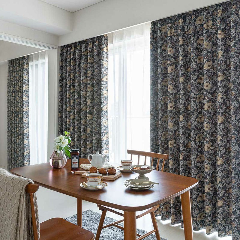 朝起きて美しいジャガードカーテンが目に入る。豊かな一日を予感させる、魅力的な一枚。