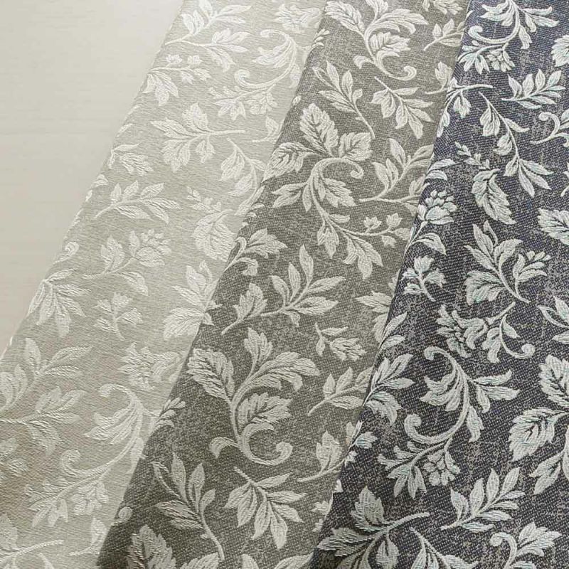 グラウンドには、掠れたようなテクスチャーを入れ、アンティークを感じさせる曖昧さが美しい生地感。光沢糸のエッセンスが加えられ、いきいきとした表情を惹きたてます。リズミカルに舞う小花やリーフは、窓一面に美しく散りばめられたデザインに。ジャガードならではの、奥行きのある繊細な表現が魅力です。