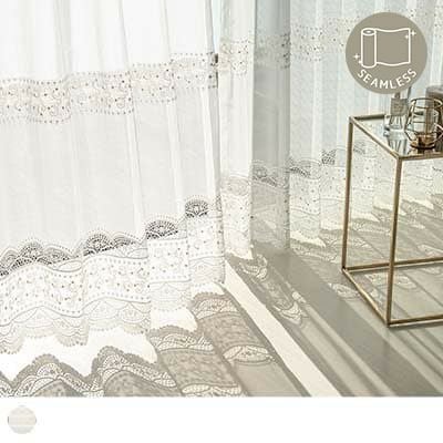 窓辺を常に美しく。幅つぎのないエンブロイダリーレースと、織の美しいジャガードカーテンの組み合わせは抜群。窓辺を彩る最高のマリアージュを、あなたにも。