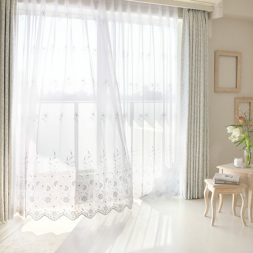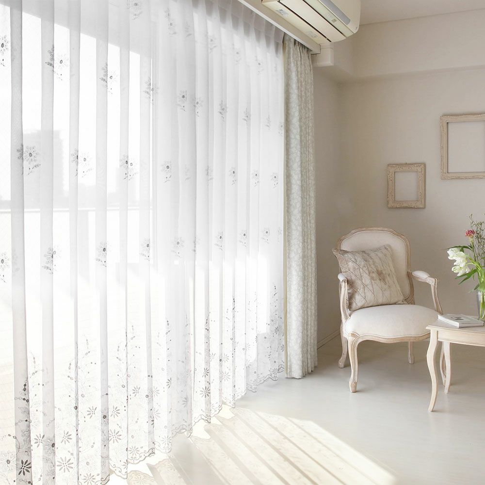 継ぎ目のない、エンブロイダリーレースカーテン