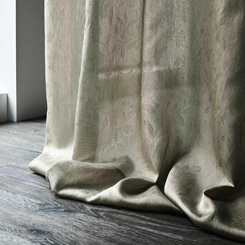 アンティークのような趣を感じる、タイムレスな魅力を持つ「ミアンダー」。裾をあえて長めにしてブレイクスタイルにすれば、海外のラグジュアリーホテルに訪れたかのような、贅沢な窓辺を演出します。