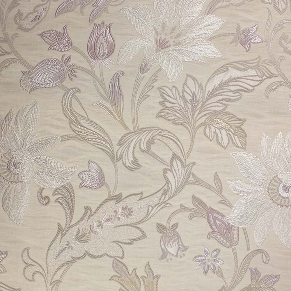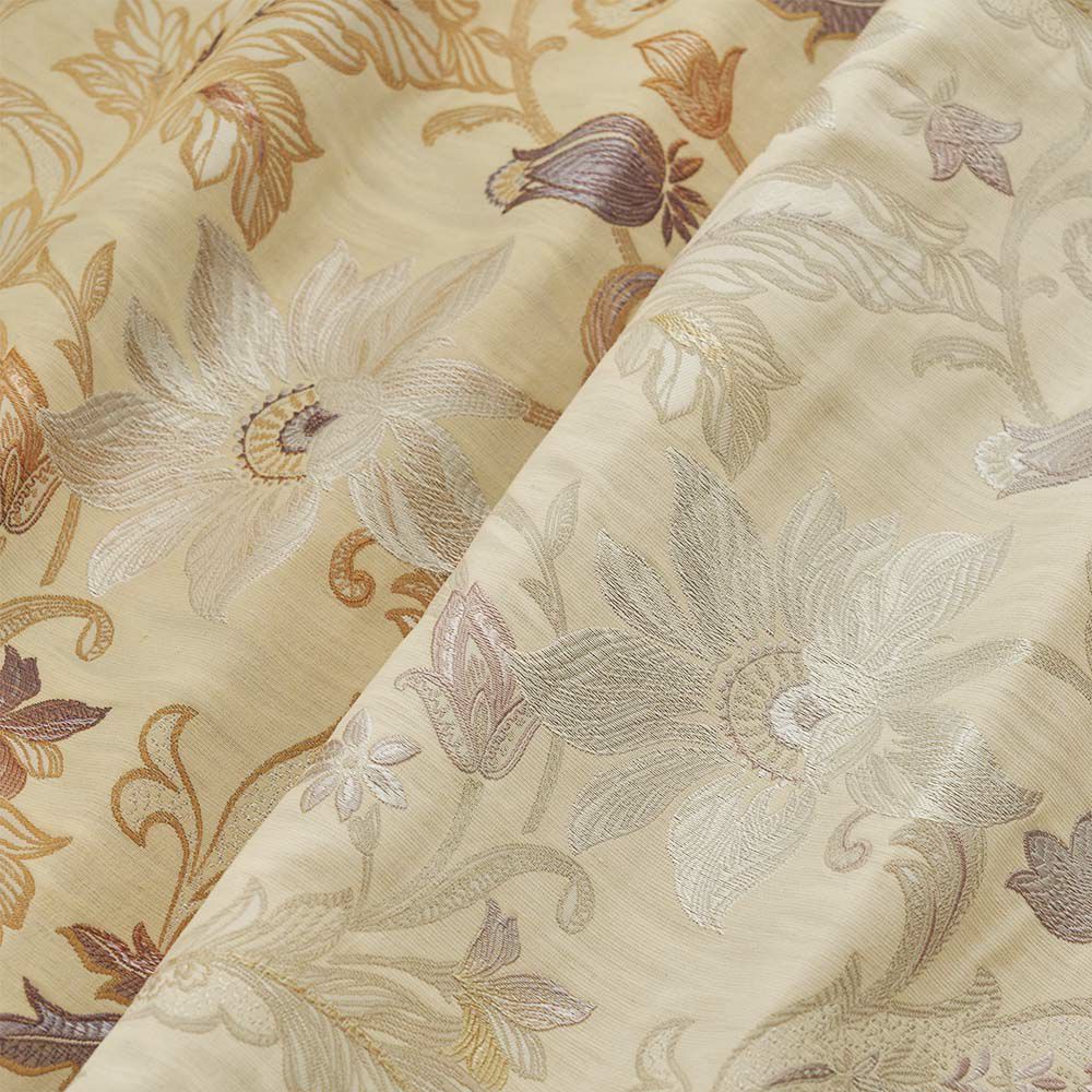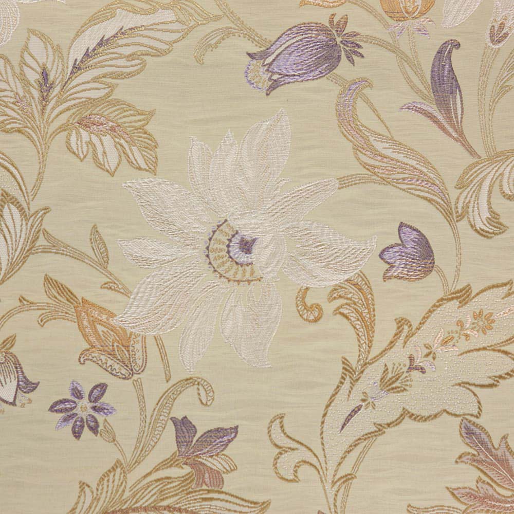 光沢糸が織りなす上品な輝きを纏い、ジャカード織により見事なユリの花が生地に浮かび上がります。シノワズリな神秘的な雰囲気を醸し出す、華やかな仕上がり。 -