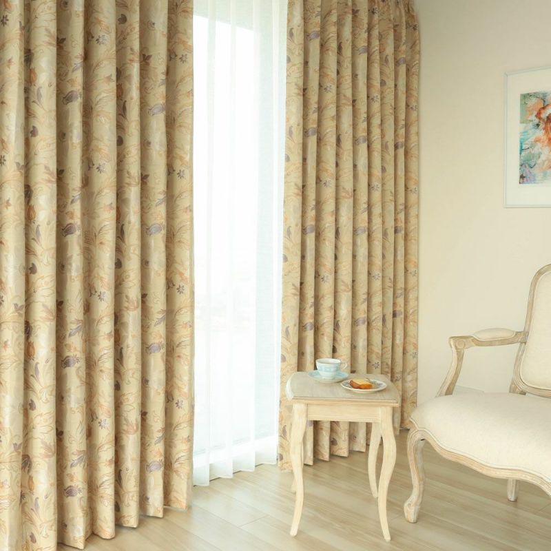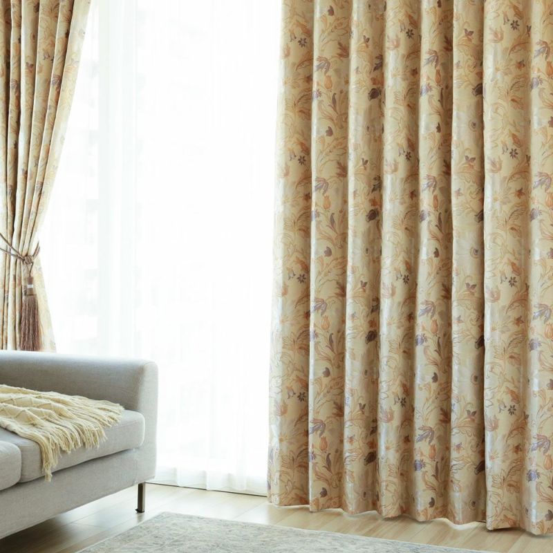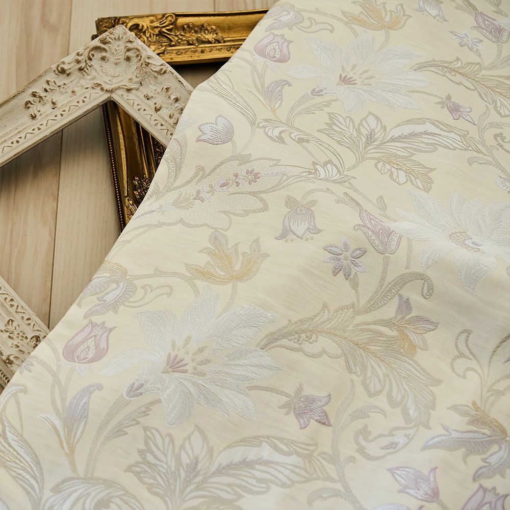 美しいテキスタイルに陽の光が当たるたび、キラキラと輝きを放つジャカードカーテン。シノワズリな雰囲気のあるデザインは、異国で見たお城のインテリアを思い出す。窓辺に飾るだけで、人とは違う趣のある空間を演出します。