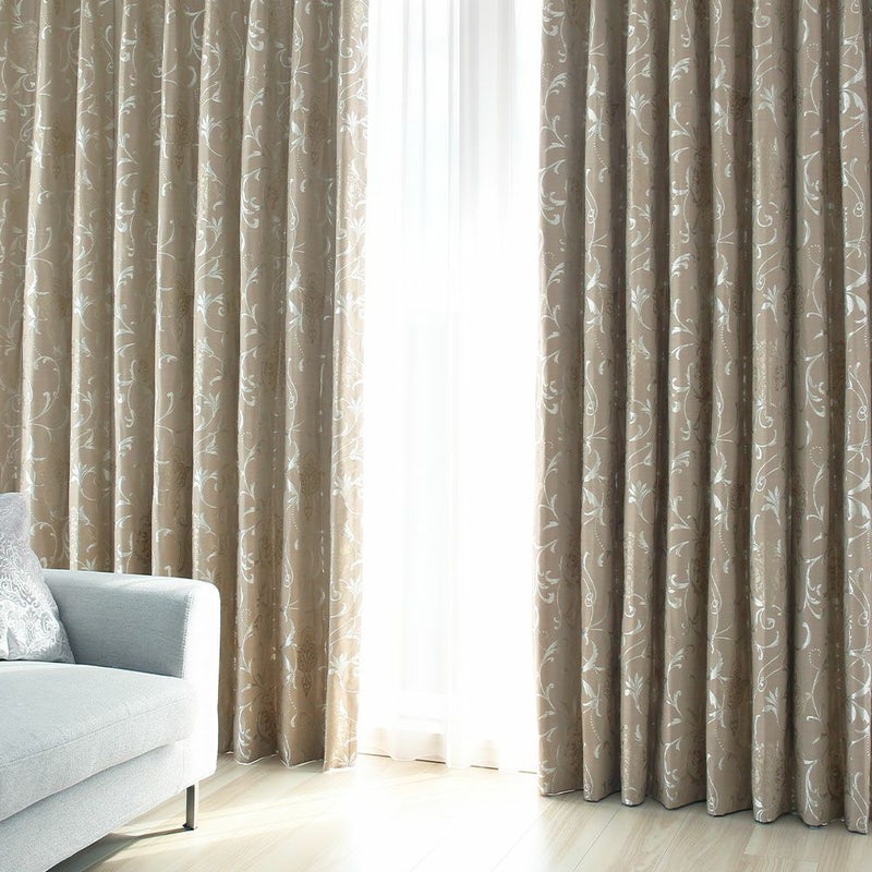 エキゾチックな雰囲気を醸し出す、窓辺のジャガードカーテン。光沢糸で描かれた更紗模様が、陽の光を浴びてキラキラと輝きを放ちます。異国情緒を思わせる、気品のあるインテリアに。窓辺に飾るだけで、エレガントな空間を演出します。