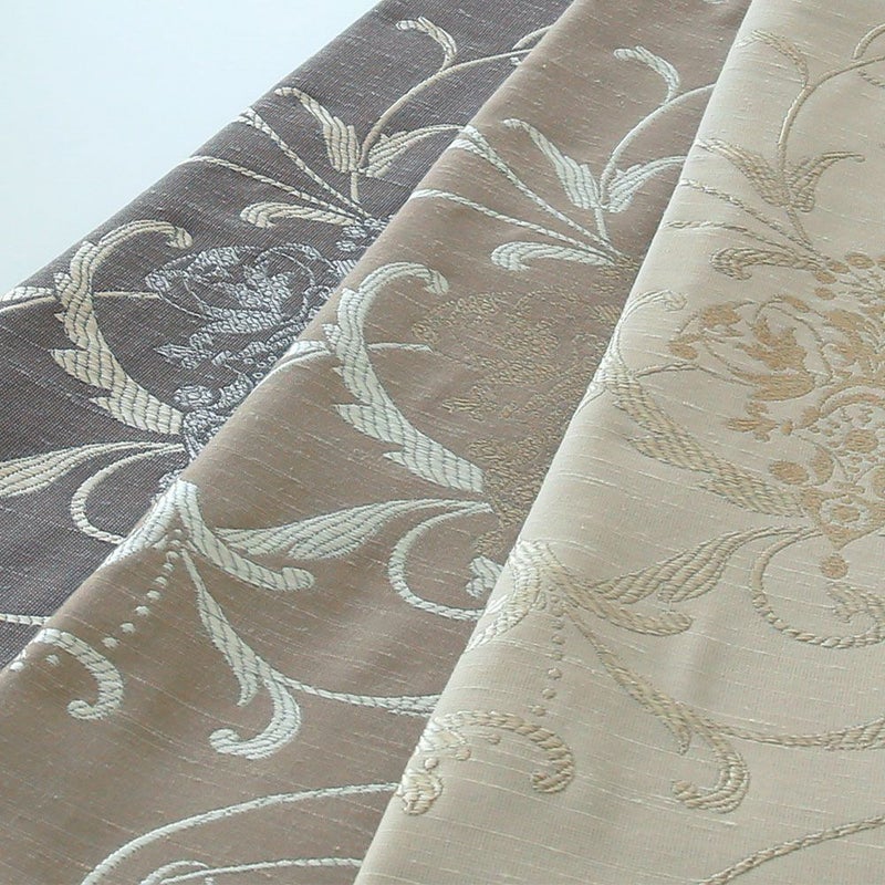 使われる色の数だけ先に糸を染め、生地を織り上げていく先染めジャガード。糸それぞれの細さの違いや風合いによって、生地に豊かな表情が現れるのが先染めの特徴です。そうして織り上げられたデザインは凹凸となり、美しい陰影が深みをもたらします。カーテンへと仕立て上がっていく様子は、芸術品と言っても過言ではありません。