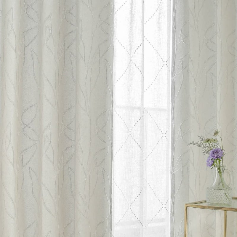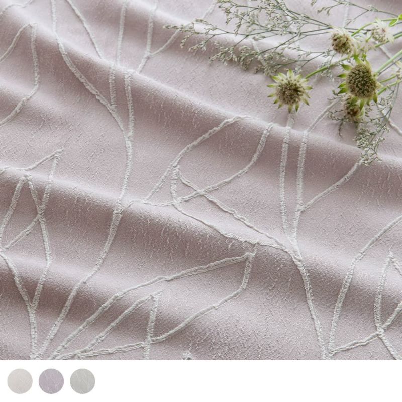 一見プレーンな無地のカーテンのようで、収縮加工を施したリーフデザインが表情を出す。こだわりの詰まったテクスチャが美しい、ジャガードカーテンです。柔らかな雰囲気漂う、心癒される一枚で窓辺を彩りませんか。 -