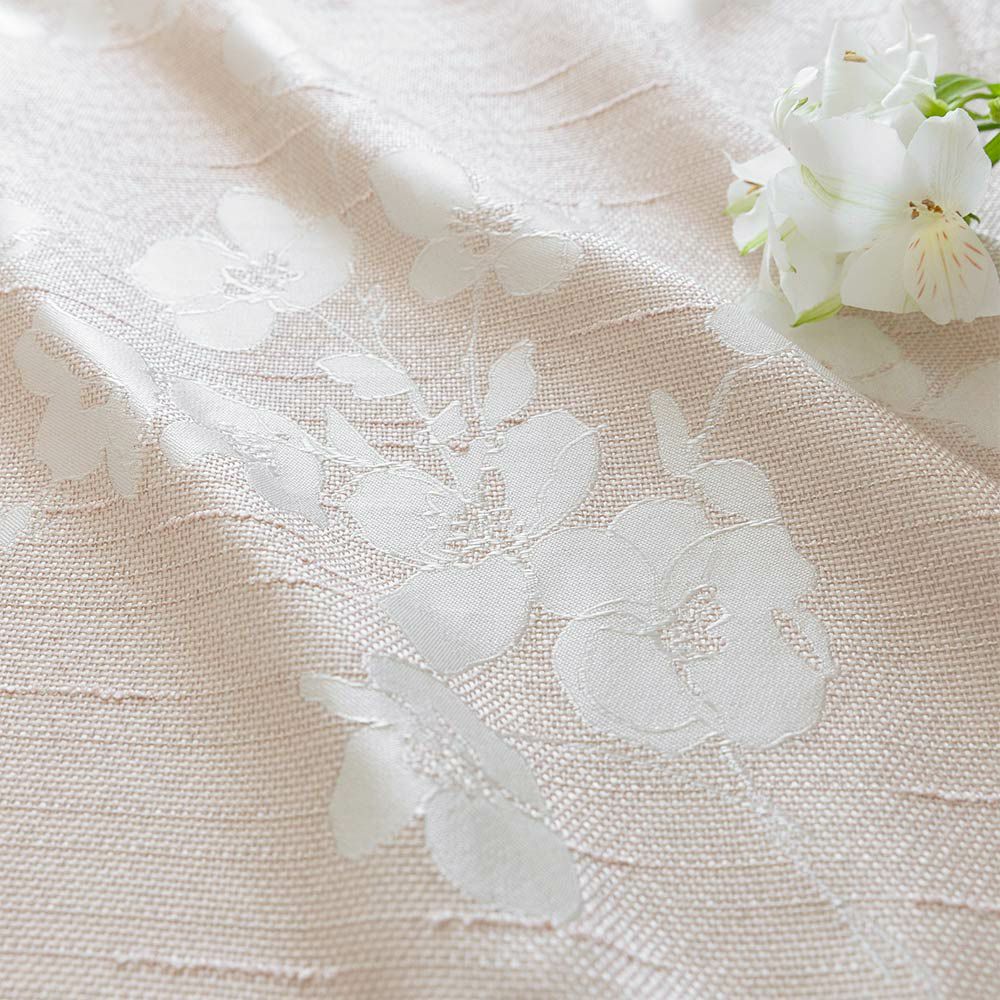 白く艶めくお花が窓辺にゆれる姿は、どこか儚くも愛らしい。憧れの「大人フェミニン」なインテリアに心をときめかせて。陽の光に当たるたびに、上品な艶を魅せるジャガードカーテンは、暮らしを華やかに彩ります。
