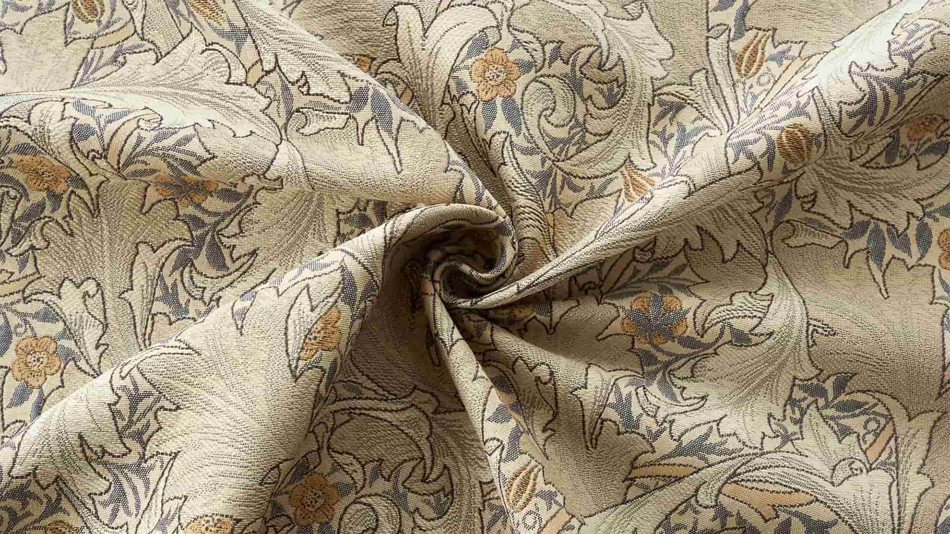 「グランヴィル」はアカンサスの葉を動きたっぷりに描いた雄大なデザイン。古代ギリシャの時代から長く愛されてきたアカンサスのモチーフは、モリスたちの時代においてもその存在感を遺憾なく発揮します。 -