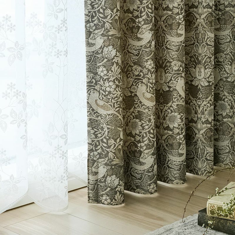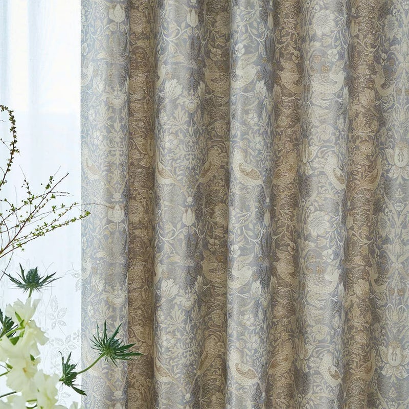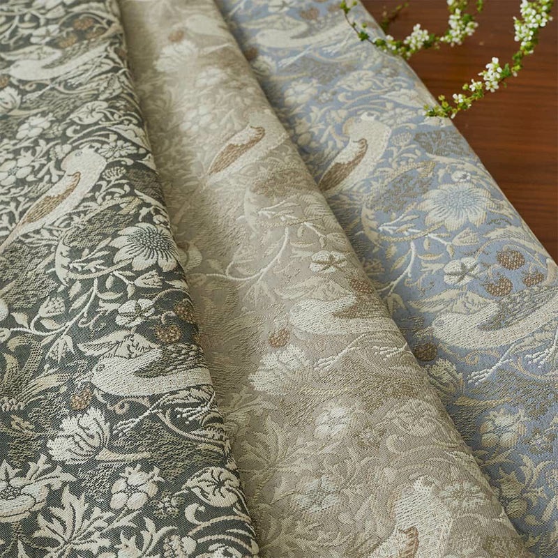 ウィリアム・モリスの代表作をジャガード織りで表現したカーテン「イチゴ泥棒」。モリスによって描かれた愛らしい泥棒さんたちは、きっとこれからも私たちの心を魅了し続けることでしょう。モリスの世界を、貴方のお部屋でも存分にご堪能ください。