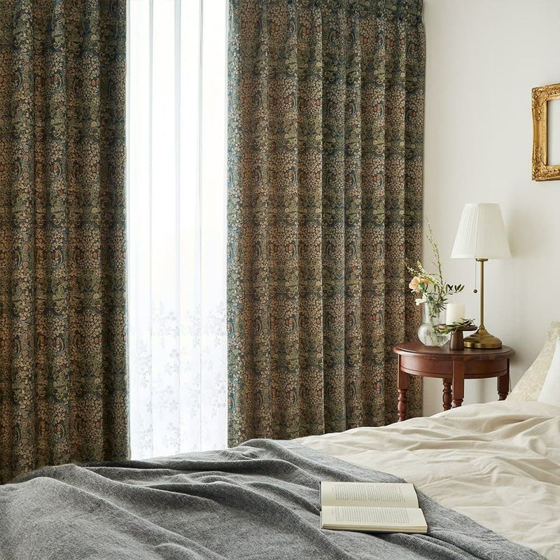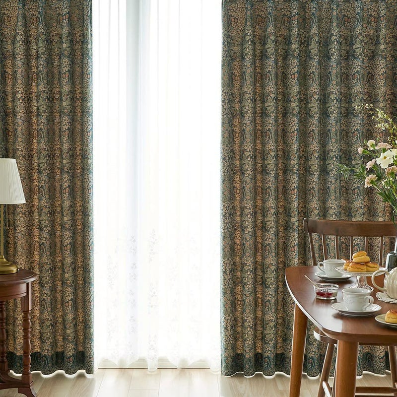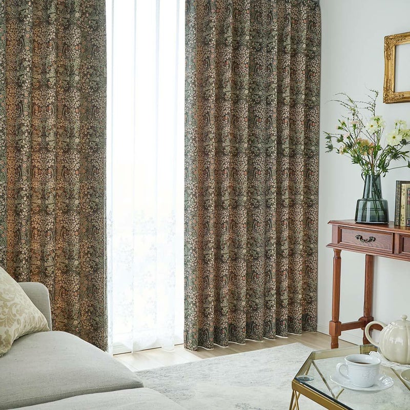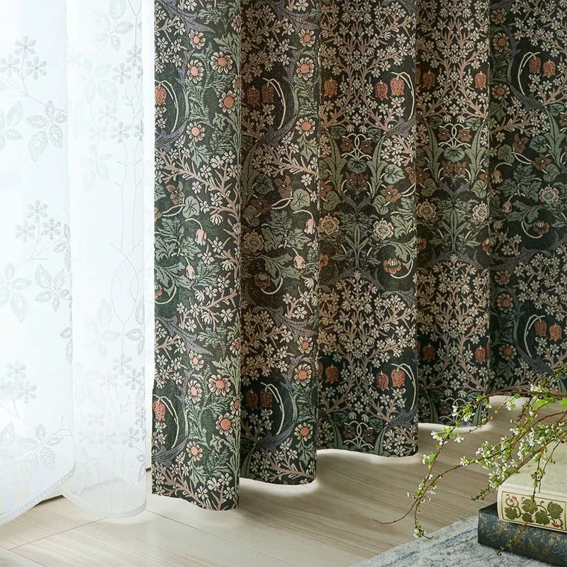 小花柄が色鮮やかに窓辺を彩るジャガードカーテン「ブラックソーン」。英国ならではの生垣を想起させる美しいデザインを眺めれば、そこは憧れのイングリッシュガーデンのよう。いつもより少しだけ、丁寧に紅茶を淹れて。さぁ、特別なティータイムのはじまりです。