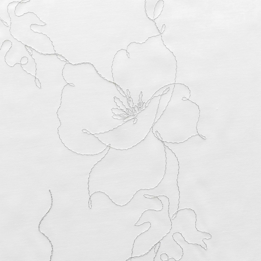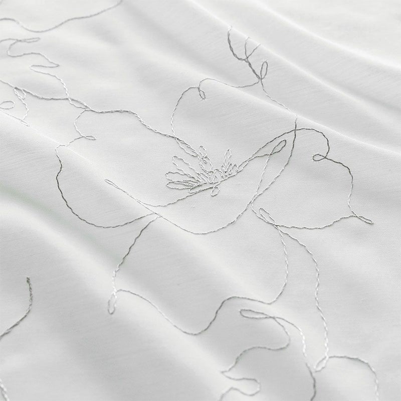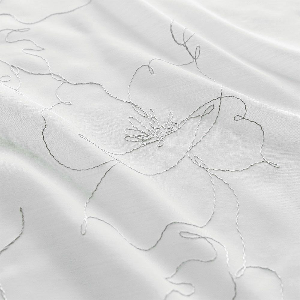 柔らかなボイル生地に、グレーの艶糸でラフに刺繍されたフラワーモチーフ。手書き風のラフなラインが、繊細さを際立たせ、儚い雰囲気を醸し出す。愛らしく繊細なデザインは、乙女心を高鳴らせます。