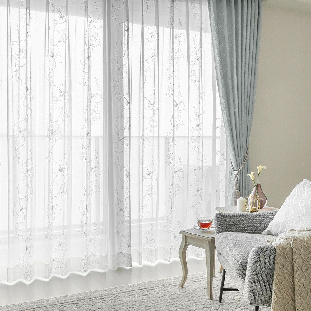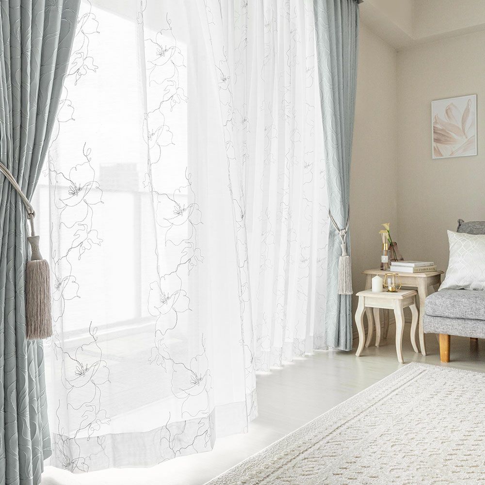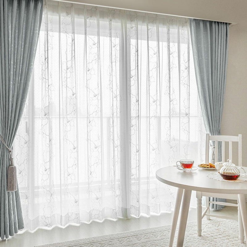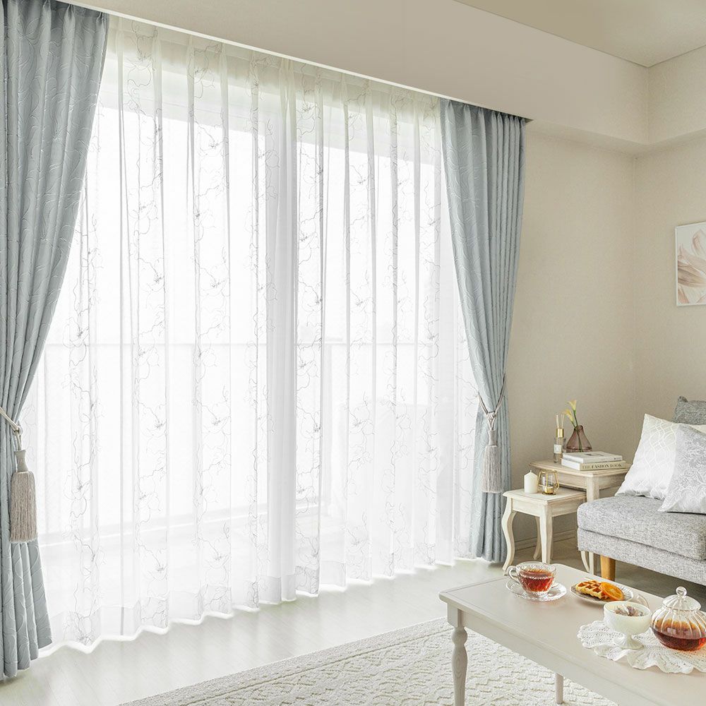 美しい窓辺には、レースカーテンとドレープカーテンのコーディネートがとても重要。織りにこだわった美しいジャガードカーテンには、刺繍を加えたこだわりのレースカーテンを合わせることで、よりおしゃれで美しい窓辺に仕上がります。