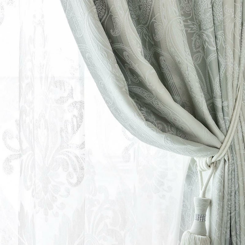 カラー:グリーン(yssn_0030) 【撮影コーディネート】レースカーテン<シルヴィア~アイボリー~>/2倍ヒダ(3つ山)、 タッセル <リュクス~ライトグレー~>