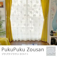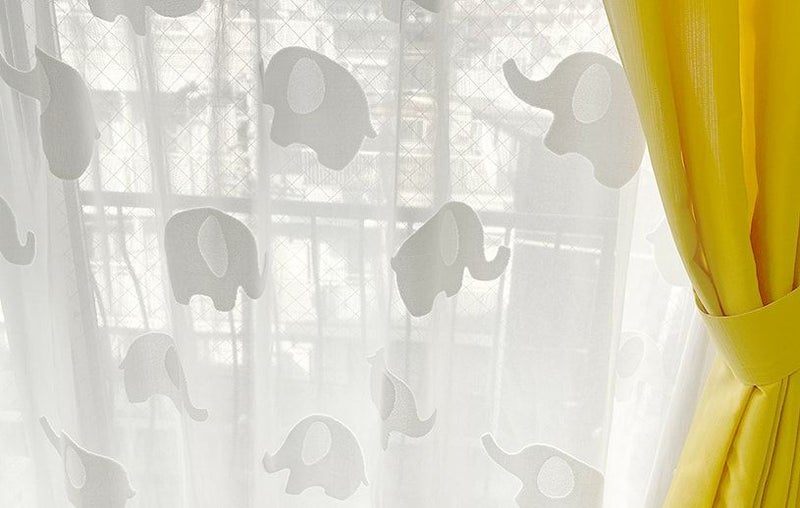ぷっくりとした可愛いぞうさんが浮かぶレースカーテン