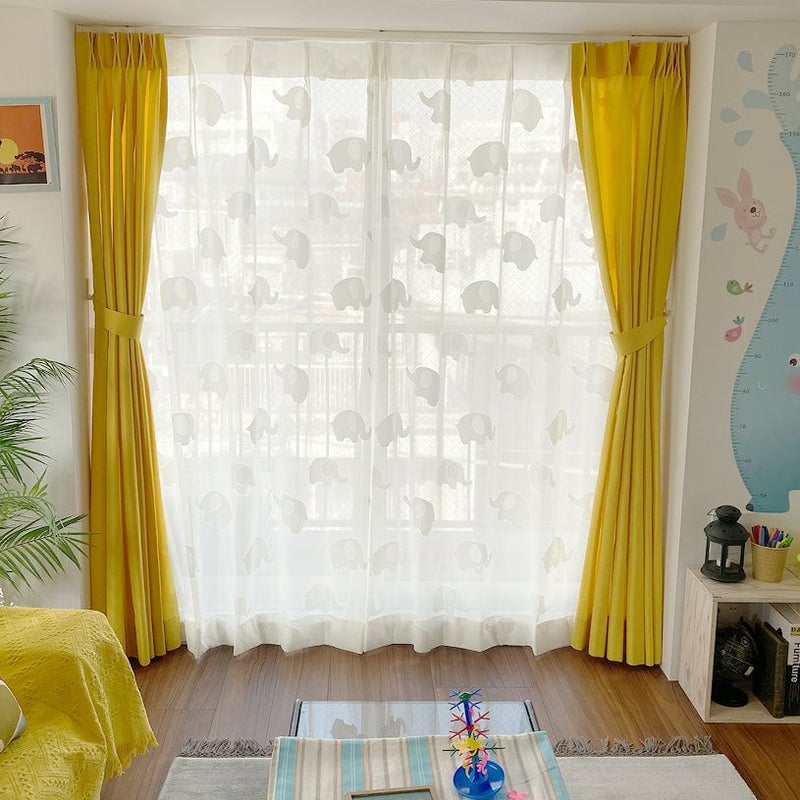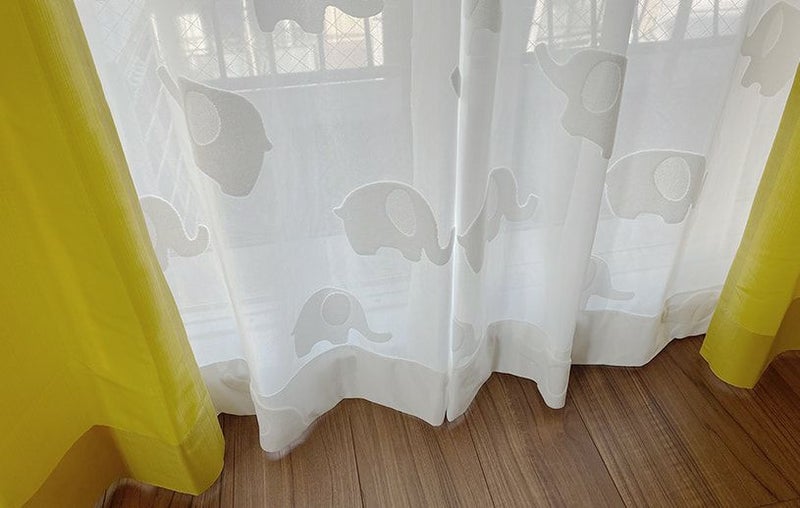 立体的なぞうさんのデザインに子供達の好奇心が誘われるカーテン