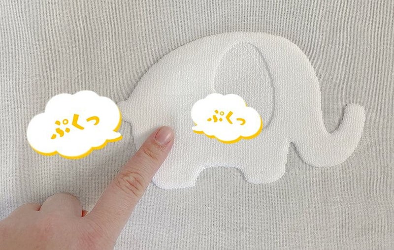 真っ白な生地のレースに沢山のぞうさんがぷっくりと立体的になっています。