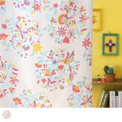 メキシコの刺繍をモチーフにデザインした、当店オリジナルのキッズカーテン。明るく華やかなカラーが子供部屋を彩ります♪