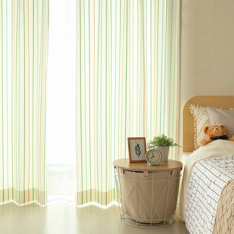 カラフルなストライプがハッピーな気持ちにさせてくれるキッズカーテン