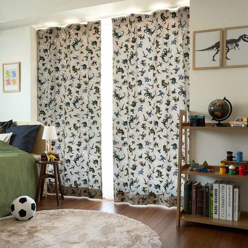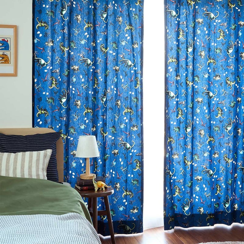 ティラノサウルスやトリケラトプスなどたくさんの恐竜たちが、本物みたいなカッコいいカーテン。ワクワクドキドキな部屋は、きっとお友達を呼んで自慢したくなる!子供部屋がキミたちにとって、お気に入りの空間になりますように♪