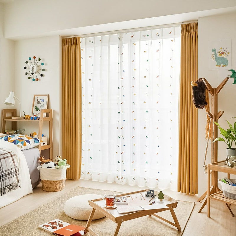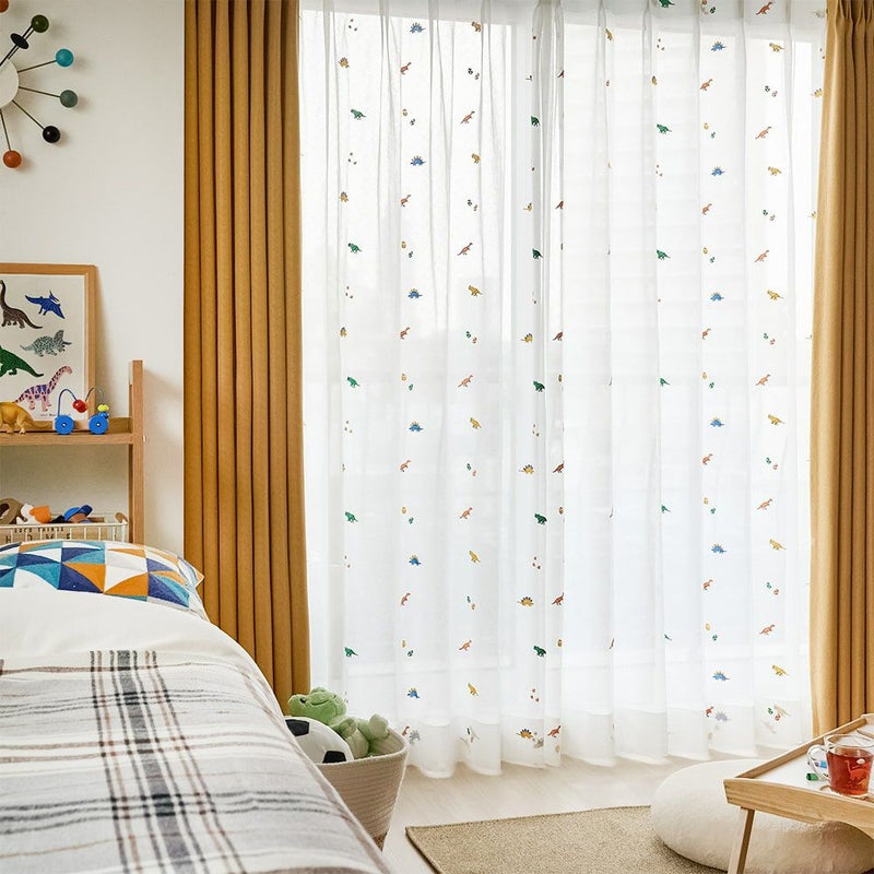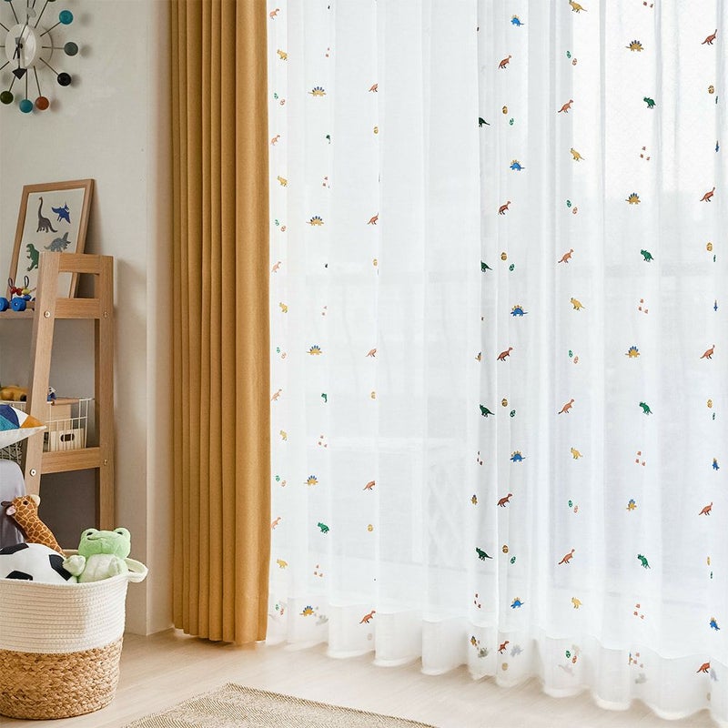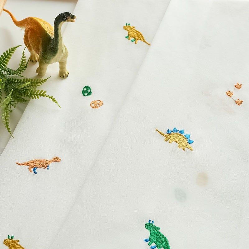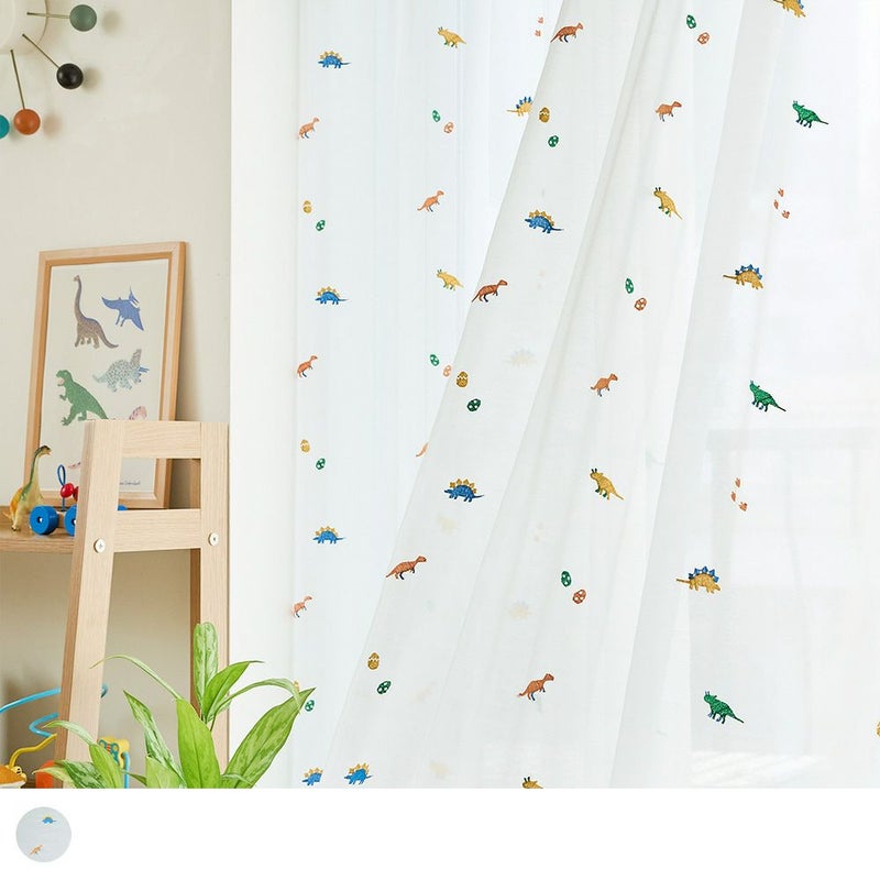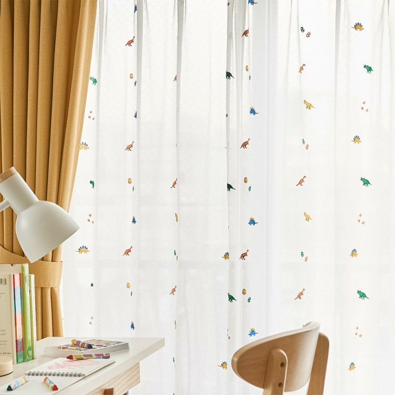 カラフルな恐竜たちの刺繍レースカーテン