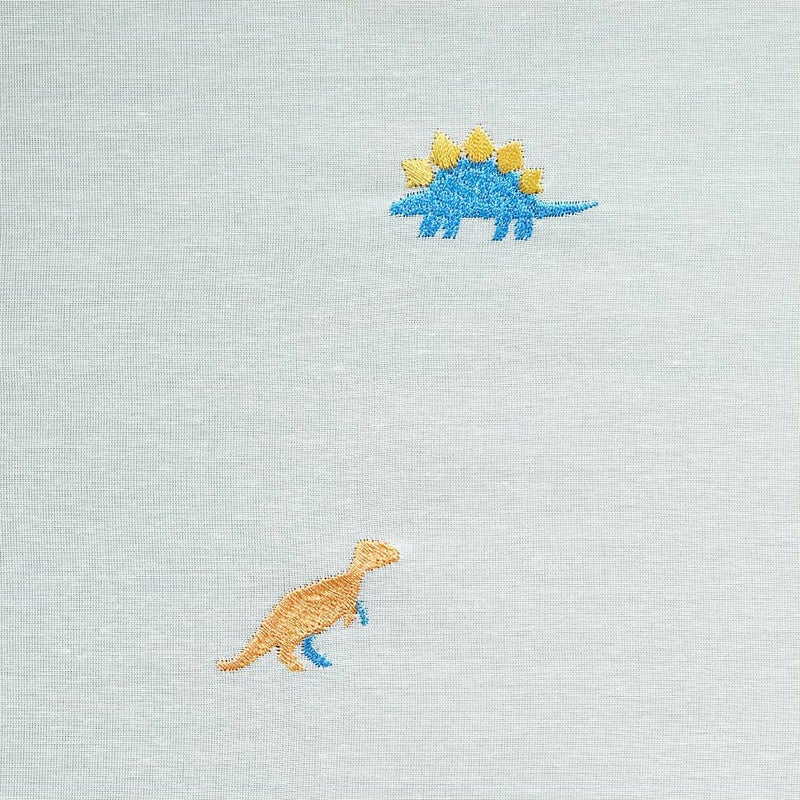 オーダーカーテンならではのこだわりがぎゅぎゅっと詰まった、糸で描かれたカラフルな恐竜たち。よーく見ると伝わる、刺繍の細かな表現にほっこり癒されるデザインです。オレンジやグリーンのポップなカラーの糸が、ホワイトの生地を小さく彩ります。