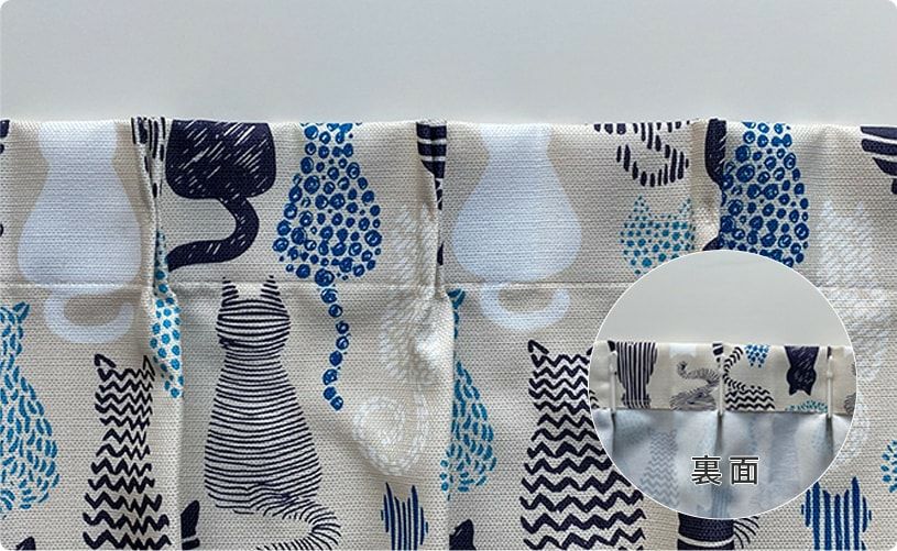 心を癒します。そんな猫好きさんにはたまらない、可愛いフォルムの後ろ姿が描かれたカーテン。 -