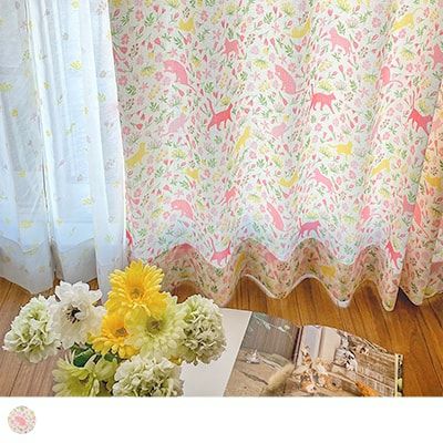 カーテンと同じ柄のお花がデザインされたレースカーテンを合わせて、トータルコーディネートを楽しもう♪