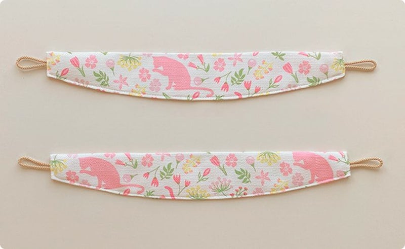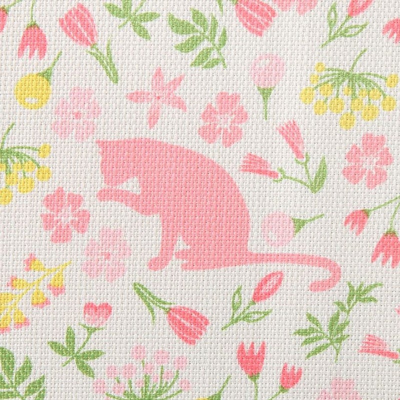 柔らかな優しい色味のフラワーガーデン。猫の兄弟もお花の色に染まってカーテンの中で遊んでいます。