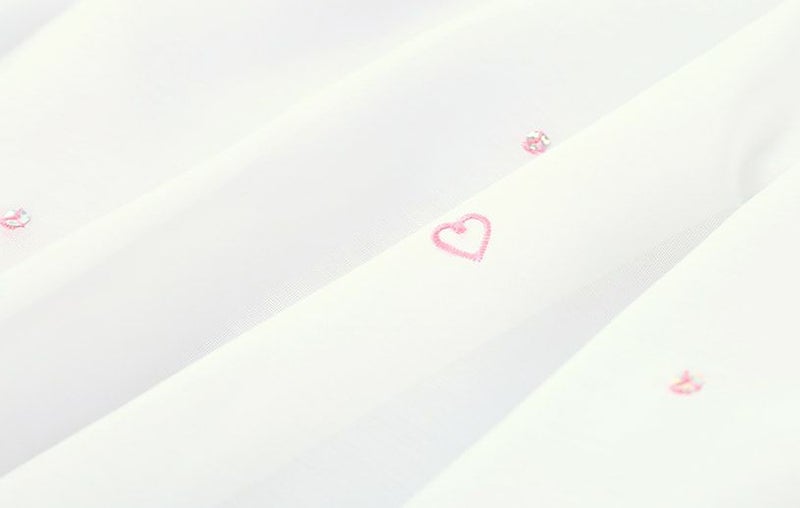 柔らかなレースに刺繍されたハート型と、キラキラのスパンコールが縫われた可愛いデザインのレースカーテン。