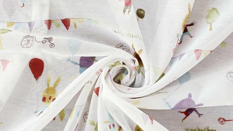 カラフルでポップなデザインが、子供部屋らしさを演出してくれるレースカーテン