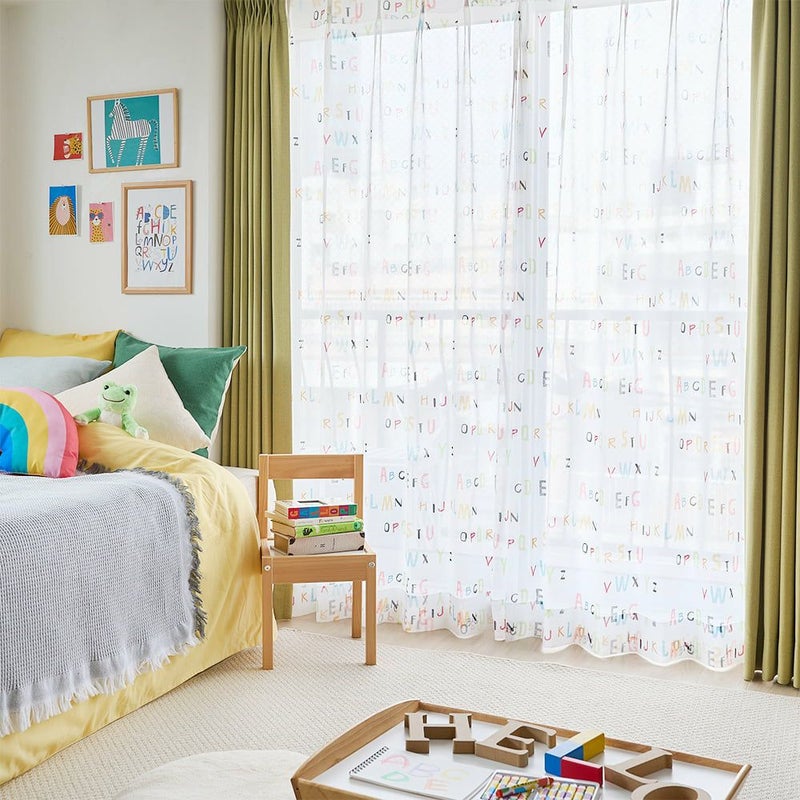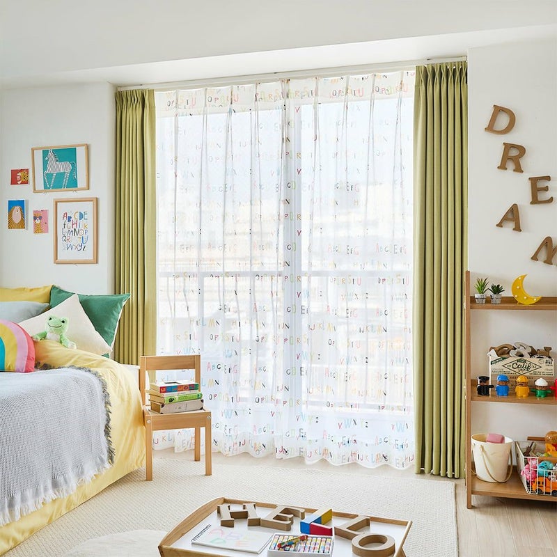 賑やかな子供部屋をさらに明るくポップにしてくれるレースカーテン。カラフルなアルファベットが今にも飛び出してきそう♪ポップな色に囲まれて、今日もワクワクな楽しい1日が始まります!
