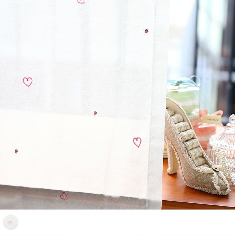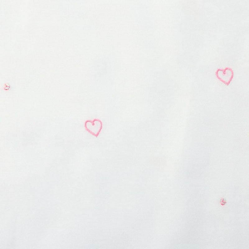柔らかなレースに刺繍されたハート型と、キラキラのスパンコールが縫われた可愛いデザインのレースカーテン。