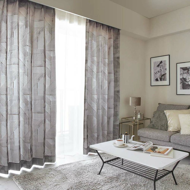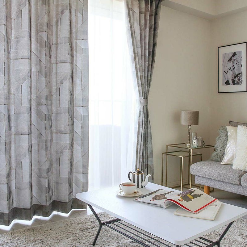 幾何学柄を風通組織で表現したグレーカーテンが新登場。オーガンジー調の生地と重なり、高級感を感じられるカーテン。 一人暮らしの部屋でも、まるで韓国ドラマに出てくるセレブのお部屋を目指すのは、いかがでしょうか。
