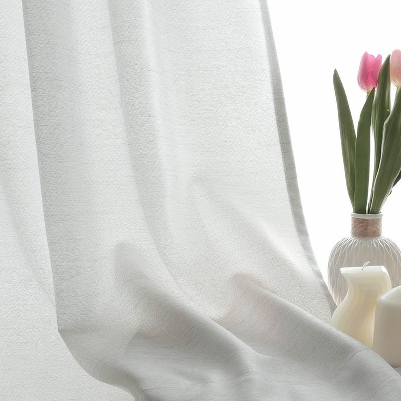 【撮影コーディネート】 レースカーテン <コモン ピュアホワイト>ミルキーニュアンスカラーをベースにさりげない織りの素材感がマッチした、光を取り込む非遮光カーテン。 よく見ると織りの凹凸が浮かび上がり、いろんな表情を見せる1枚です。 お値段もお求めやすく、シンプルな韓国インテリアのお部屋にいかがでしょうか。韓国風インテリアに欠かせない、ふんわりとした雰囲気を引き出せるカーテンです。