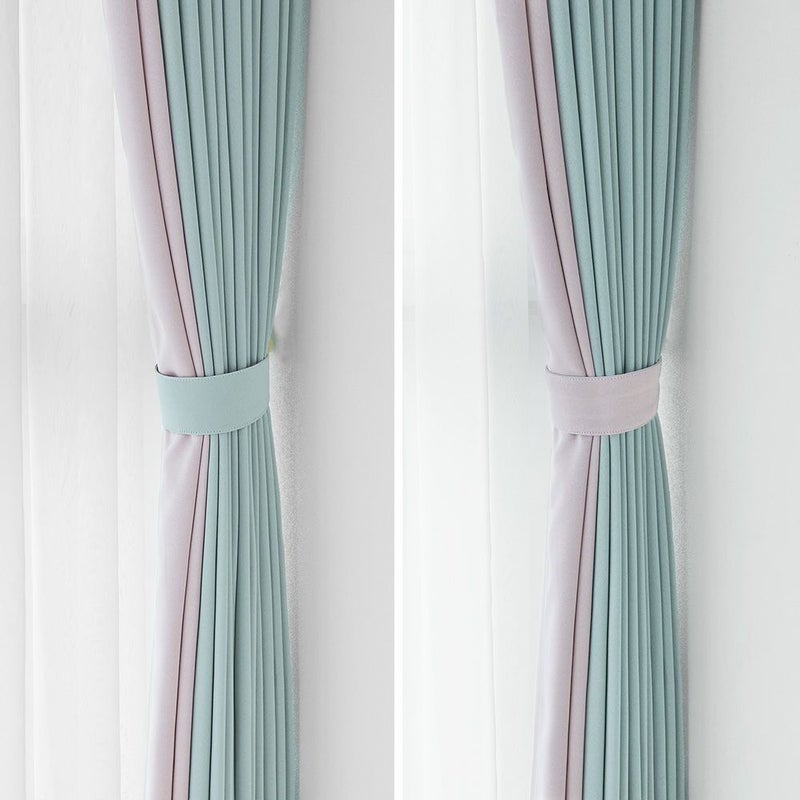 カーテンのセンター部分にアクセントカラーをジョイントしたので、カーテンを閉じるとアクセントカラーの面積が増えて、より存在感を放ちます。カーテンを開けている時と閉じている時、ひと味違う2つの表情をお楽しみいただけます。