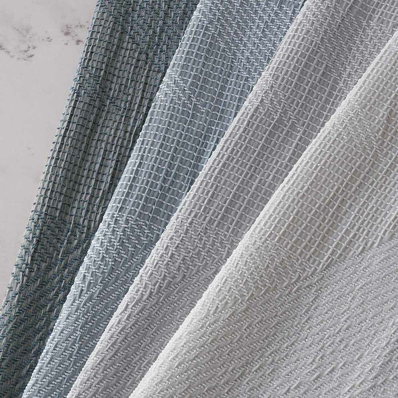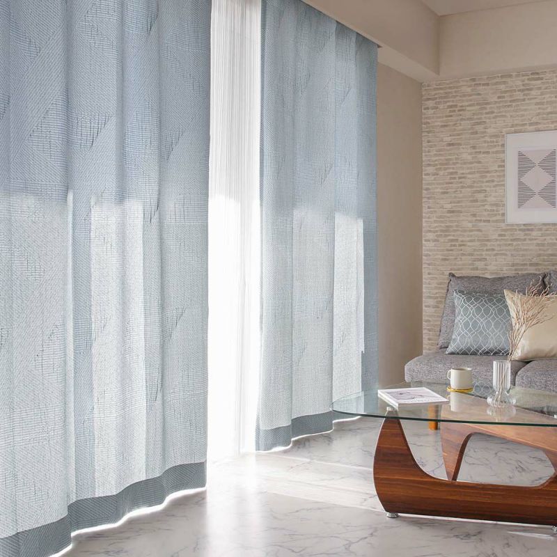 ふくれ織りでデザインされているのは、大きめの幾何学模様。光にあたるとうっすらと浮かび上がる、控えめなデザインだから窓辺を優しい雰囲気に仕上げてくれます。