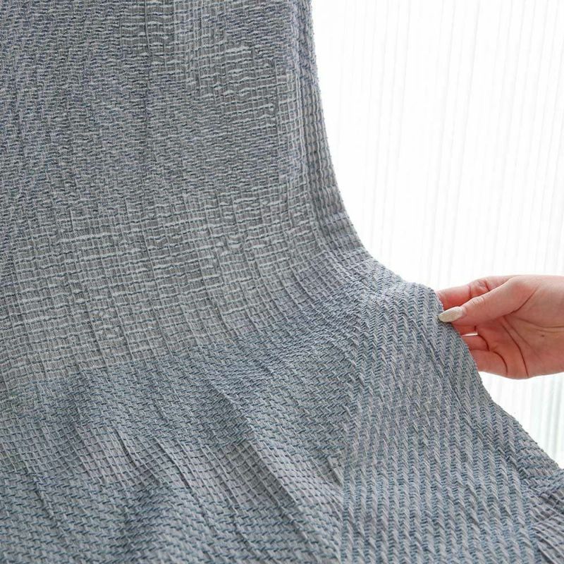 指先でそっと触れると、ふくれ織りならではのふっくらとした雰囲気を感じられます。おだやかな生地感のカーテンで、毎日の開け閉めも心地良い瞬間に。