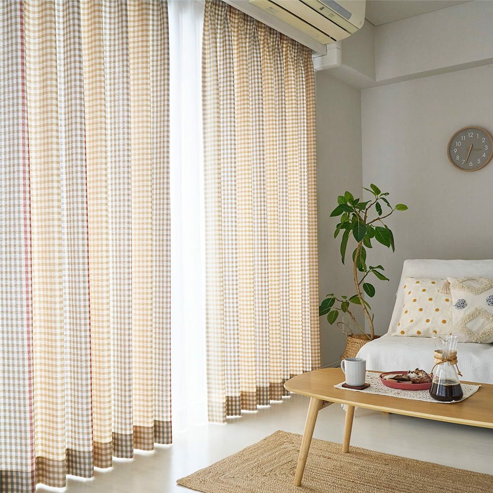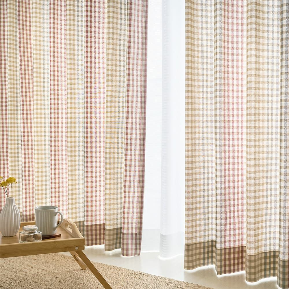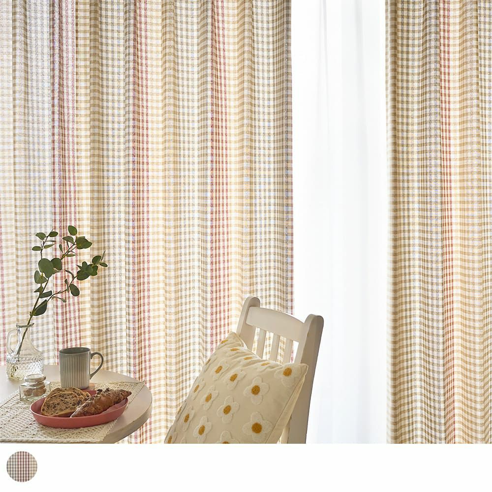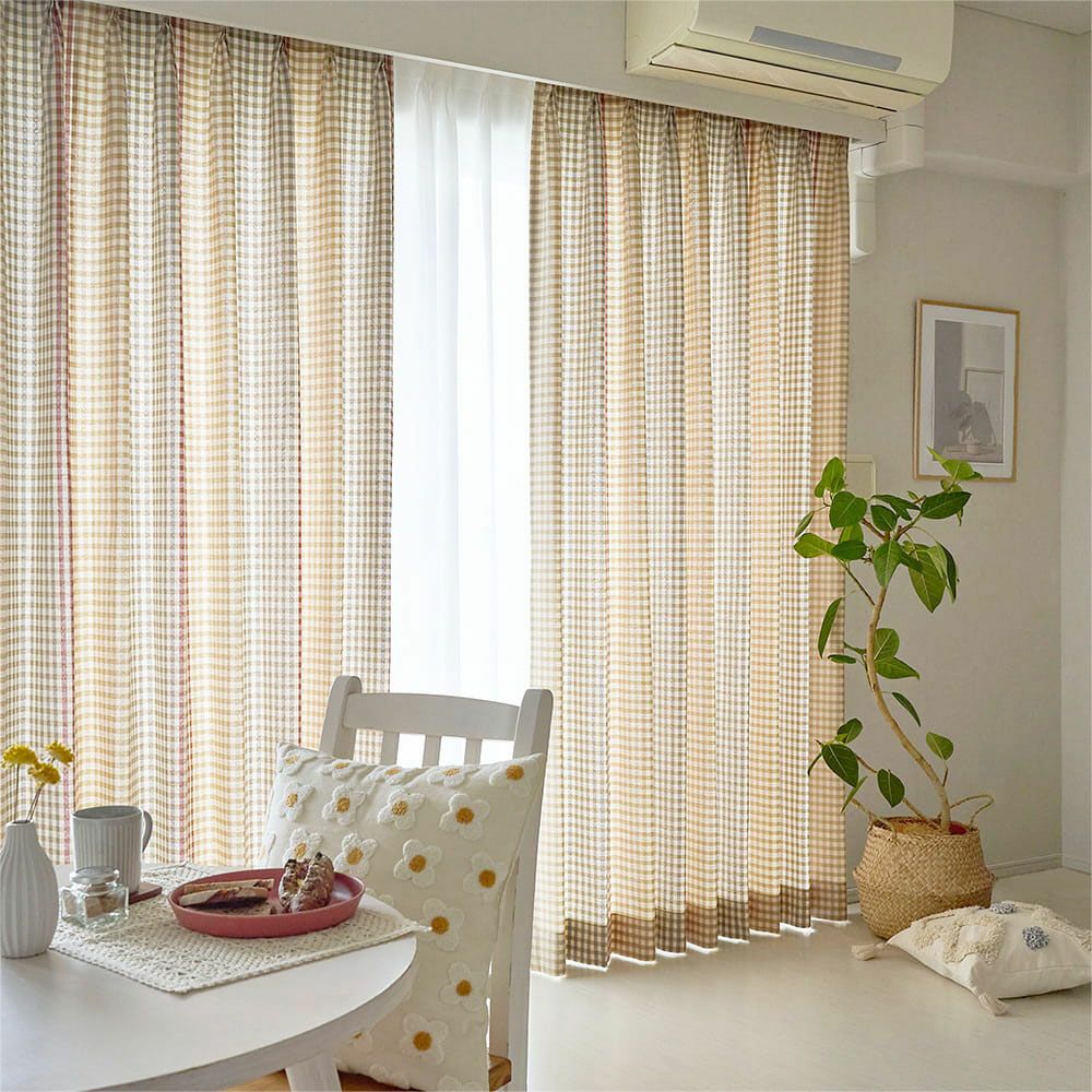 韓国カフェ風チェック柄カーテン