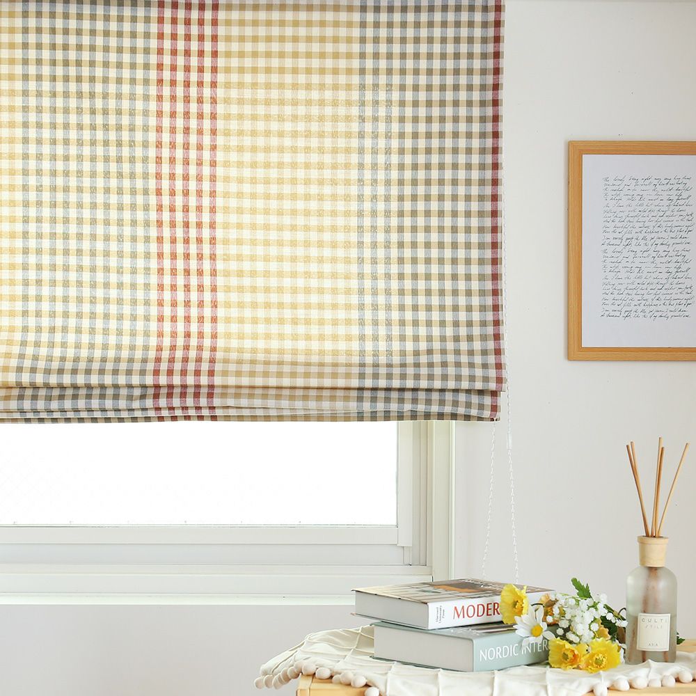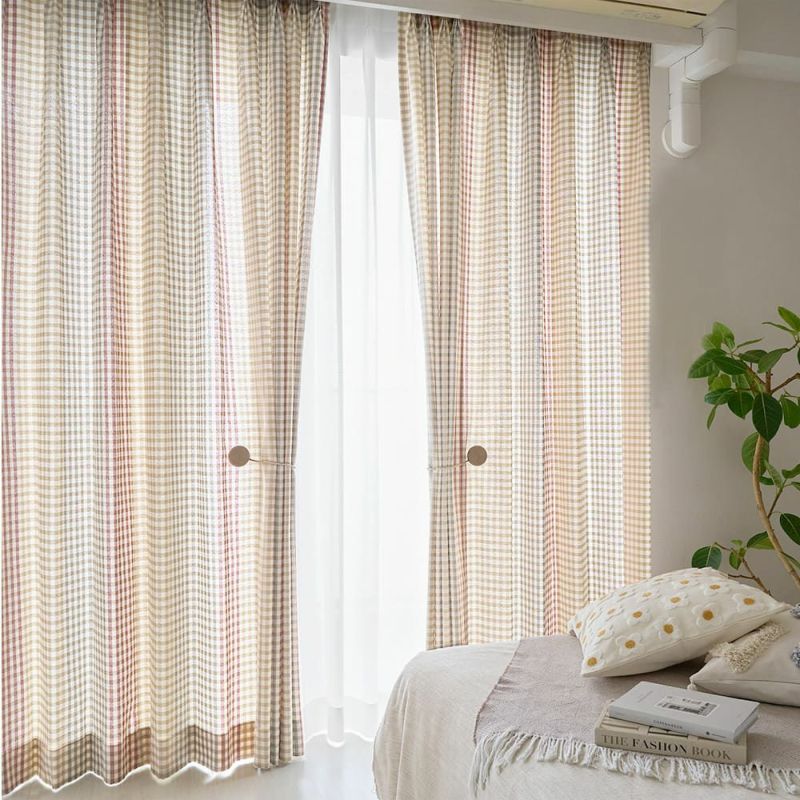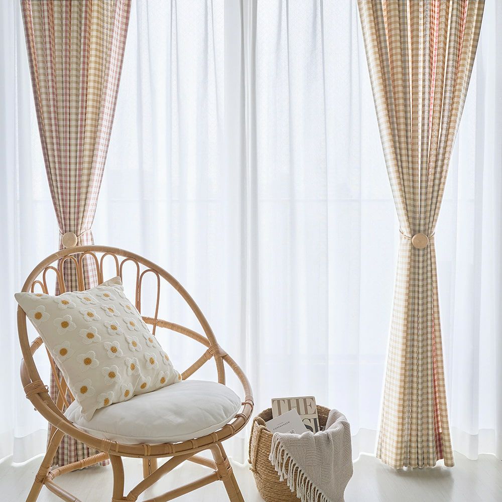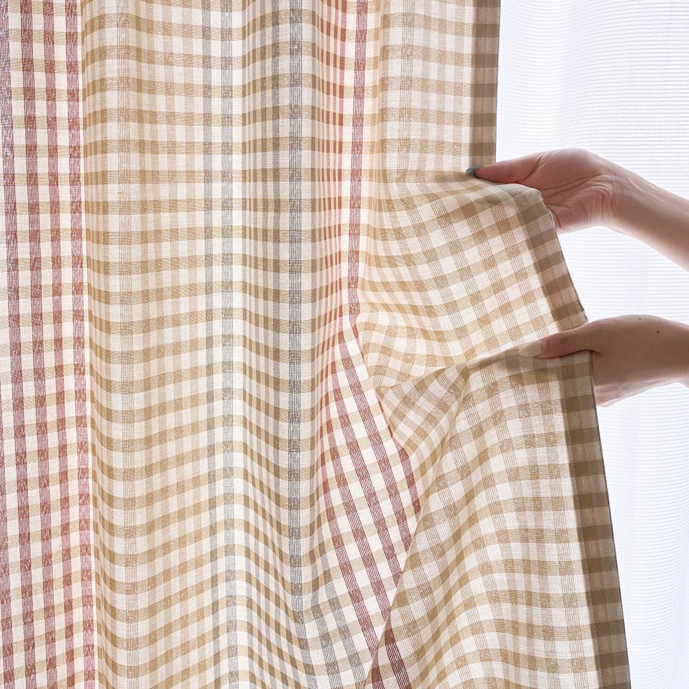 韓国カフェ風チェック柄カーテン