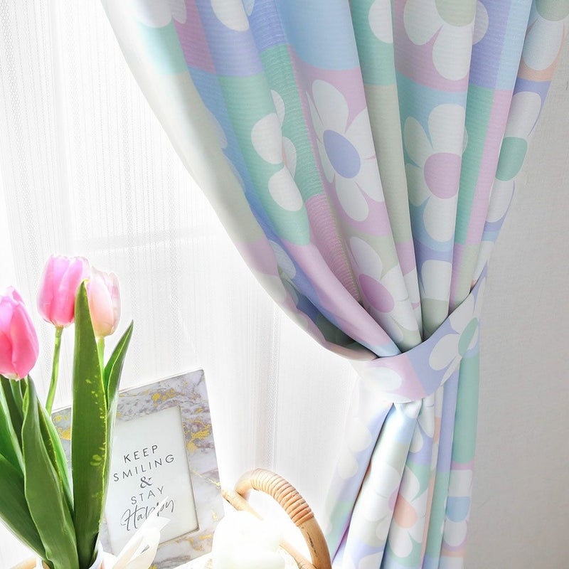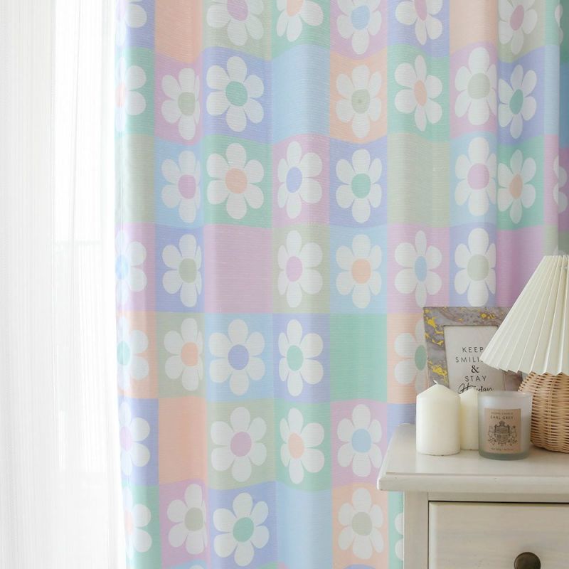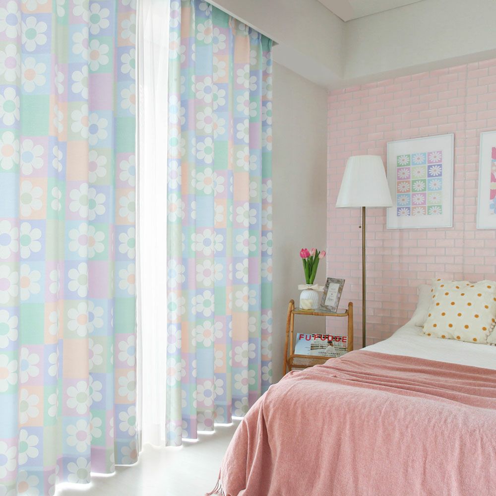 女の子なら大好きなパステル×花柄。 大き目のシンプルな花とパステルの組み合わせは絶対!そんな想いからディレクターの想いをいっぱいに詰め込み、配色にこだわってデザインしたカーテンです。