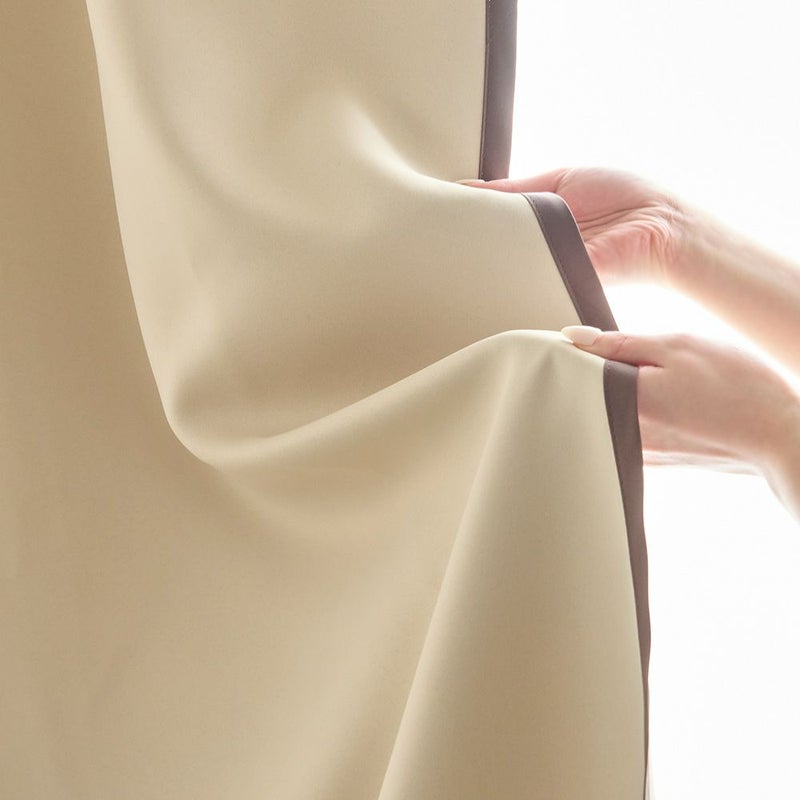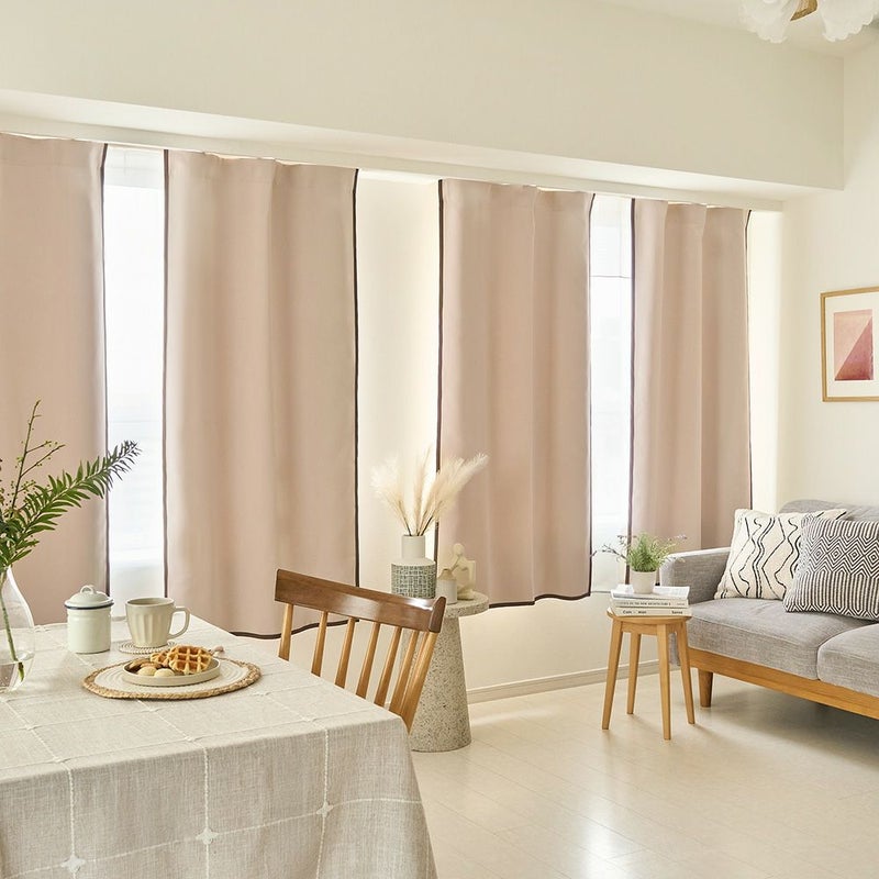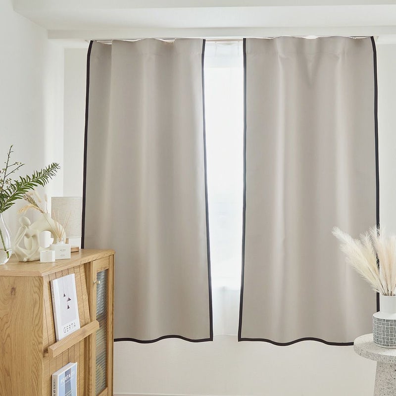 ナチュラルな韓国インテリアを目指すあなたに届けたい、無地よりも“ちょっとおしゃれ”な遮光カーテン。シンプルな無地カーテンも好きだけど、あと少しなにか遊び心が欲しい、そんなときに選んでほしいディレクターイチ推しの1枚です。バイアステープがほどよいアクセントになって、まさに理想の韓国インテリアが叶うはず。なめらかな生地感や優れた遮光性、遮熱・保温機能も嬉しいポイント!