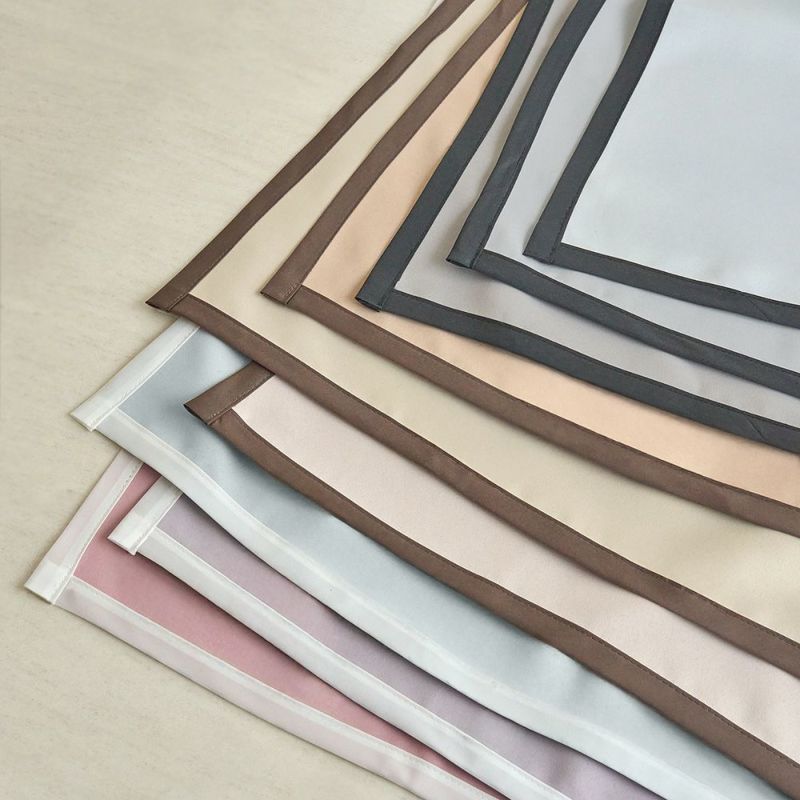 ディレクターが厳選したおしゃれな9色をお届け。グレーやグレージュの生地にはブラックのバイアステープを。ベージュやキャメルの生地にはブラウン、ラベンダーやミントの生地にはホワイトのバイアステープをあしらいました。どの組み合わせも、少しづつ印象が違くって可愛い!あなたの好きなカラーはどの組み合わせ?