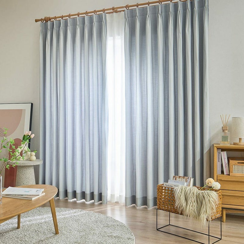 カーテンの上部はぐらつき防止アジャストフックを使用し、裾部分には表面に縫い目が目立ちにくい「すくい縫い」を採用しています。また、両サイドは約2.5cm3つ折。裾は10cm3つ折で、両サイドの裾にはあえてウェイト(おもり)を入れておりません。高品質な生地そのもののしなやかさで、広がりを抑えてすっきりした姿を保ってくれます。